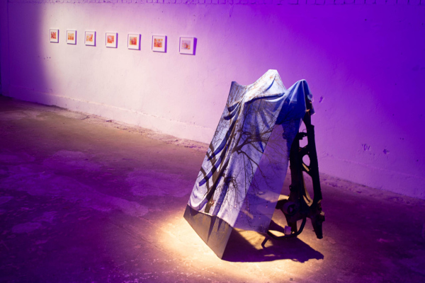 In her practice, Erdmane’s interest in the materiality of photography often compels her to use different techniques to create distortion and deformation of the material she works with. In this case she has obscured collected photographs taken around Tallinas ielas kvartāls in the past adding another veil to reiterate the fading of memory by time and its elements. Along with large format photographs she attempts to tell a hidden story which can never be completely uncovered. It remains buried by time and the viewer is invited to theorize about how it could have been before it became part of an invisible city shrouded by the past.