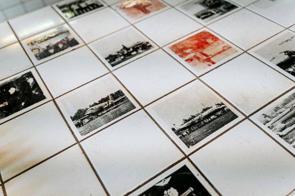 Photography, print on dibond 80x100 cm, text, private archival materials (photography) 15x15 cm,